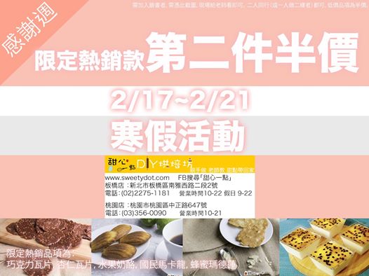 請注意活動時間和限制,因資料來源由系統抓取甜心一點臉書, 請撥電話跟我們確認喔,板橋店(02)2275-1181 桃園店(03)356-0090