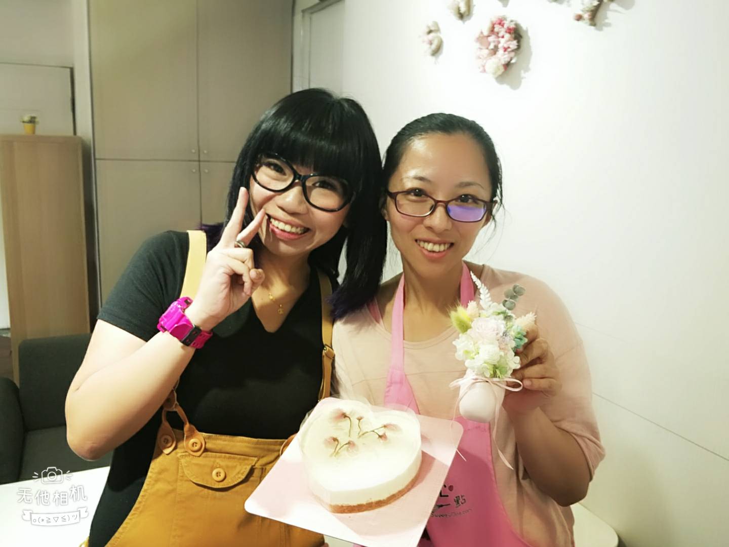 不凋花藝與櫻花重乳酪完美結合,大家都玩的很開心 , 【甜心一點DIY烘焙坊】