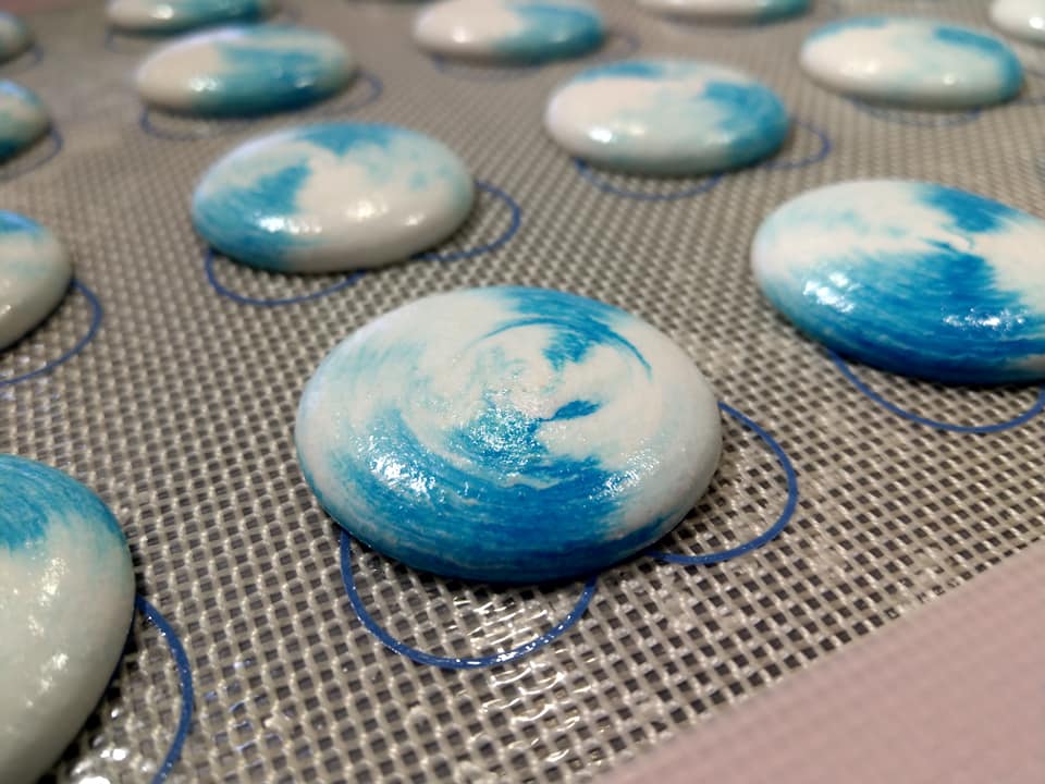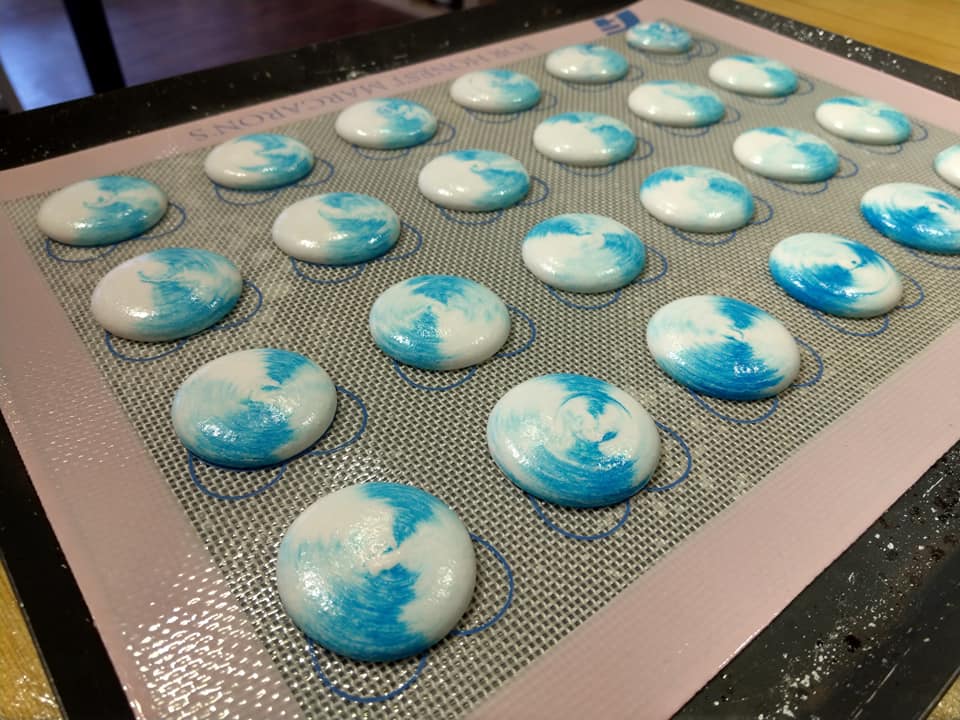 來點寧靜的藍色馬卡龍如何? 美麗的色澤配上美麗的裙邊 內層一點苦甜夾心 絕對是最浪漫最優雅的下午茶選擇 【甜心一點DIY烘培坊-板橋店】【甜心一點DIY烘培坊-桃園店】