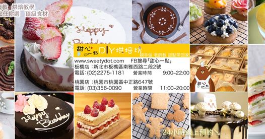 熊爸也好無聊,在開店囉~ 歡迎來玩! 請來電預約,02-2275-1181 敬請貴賓們注意安全喔 甜心一點diy烘焙坊 甜心一點DIY烘焙坊-板橋店板橋店地址:新北市板橋區南雅西路二段2號1樓預約服務電話:(02)2275-1181暑假提早營業時間:9:00~22:00 甜心一點DIY烘焙坊-桃園店桃園店地址:桃園市桃園區中正路647號預約服務電話:(03)356-0090營業時間:11:00~20:00 官方網站為 www.9-dollar.com臉書 https://www.facebook.com/wwwsweetydotcom/ 此文章內容是網頁系統程式,自動抓取甜心一點DIY烘焙坊的臉書群組,文章內的活動、特價、資訊等相關資訊,請注意時效性,煩請在預約、消費之前再次確認。本資料的來源 這裡 甜心一點DIY烘焙坊的臉書群組原文。 板橋DIY烘焙,板橋DIY烘焙,板橋DIY蛋糕,板橋甜點,板橋烘焙,板橋做甜點,板橋 甜點,板橋生日,板橋景點,板橋名店,板橋美食,板橋何處去,板橋自己做,板橋包場,板橋同學會場地,板橋聚餐,板橋聚會,板橋,桃園DIY烘焙,桃園DIY烘焙,桃園DIY蛋糕,桃園甜點,桃園烘焙,桃園做甜點,桃園 甜點,桃園生日,桃園景點,桃園名店,桃園美食,桃園何處去,桃園自己做,桃園包場,桃園同學會場地,桃園聚餐,桃園聚會,桃園,新莊DIY烘焙,新莊DIY烘焙,新莊DIY蛋糕,新莊甜點,新莊烘焙,新莊做甜點,新莊 甜點,新莊生日,新莊景點,新莊名店,新莊美食,新莊何處去,新莊自己做,新莊包場,新莊同學會場地,新莊聚餐,新莊聚會,新莊,土城DIY烘焙,土城DIY烘焙,土城DIY蛋糕,土城甜點,土城烘焙,土城做甜點,土城 甜點,土城生日,土城景點,土城名店,土城美食,土城何處去,土城自己做,土城包場,土城同學會場地,土城聚餐,土城聚會,土城,中和DIY烘焙,中和DIY烘焙,中和DIY蛋糕,中和甜點,中和烘焙,中和做甜點,中和 甜點,中和生日,中和景點,中和名店,中和美食,中和何處去,中和自己做,中和包場,中和同學會場地,中和聚餐,中和聚會,中和,林口DIY烘焙,林口DIY烘焙,林口DIY蛋糕,林口甜點,林口烘焙,林口做甜點,林口 甜點,林口生日,林口景點,林口名店,林口美食,林口何處去,林口自己做,林口包場,林口同學會場地,林口聚餐,林口聚會,林口,內壢DIY烘焙,內壢DIY烘焙,內壢DIY蛋糕,內壢甜點,內壢烘焙,內壢做甜點,內壢 甜點,內壢生日,內壢景點,內壢名店,內壢美食,內壢何處去,內壢自己做,內壢包場,內壢同學會場地,內壢聚餐,內壢聚會,內壢,中壢DIY烘焙,中壢DIY烘焙,中壢DIY蛋糕,中壢甜點,中壢烘焙,中壢做甜點,中壢 甜點,中壢生日,中壢景點,中壢名店,中壢美食,中壢何處去,中壢自己做,中壢包場,中壢同學會場地,中壢聚餐,中壢聚會,中壢,南崁DIY烘焙,南崁DIY烘焙,南崁DIY蛋糕,南崁甜點,南崁烘焙,南崁做甜點,南崁 甜點,南崁生日,南崁景點,南崁名店,南崁美食,南崁何處去,南崁自己做,南崁包場,南崁同學會場地,南崁聚餐,南崁聚會,南崁,新北市DIY烘焙,新北市DIY烘焙,新北市DIY蛋糕,新北市甜點,新北市烘焙,新北市做甜點,新北市 甜點,新北市生日,新北市景點,新北市名店,新北市美食,新北市何處去,新北市自己做,新北市,聚餐,聚會,包場,場地出租新北DIY烘焙,新北DIY烘焙,新北DIY蛋糕,新北甜點,新北烘焙,新北做甜點,新北 甜點,新北生日,新北景點,新北名店,新北美食,新北何處去,新北自己做,新北,DIY烘焙,DIY蛋糕,蛋糕DIY,甜點,甜點,自己做蛋糕,diy,一點,甜點,蛋糕,自己做, 烘焙,點心,生日蛋糕,自己做生日蛋糕,甜點DIY,場地出租,聚會,聯誼,辦活動,場地,生日趴,甜心一點DIY烘焙坊,